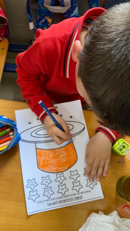 Okulumuz öğrencilerine rehber öğretmeniminiz tarafından iletişim becerileri konulu etkinlikler yapıldı. Öğrenciler şapkaları kullanarak soru sorma, etkin dinleme, teşekkür etme, özür dileme, empati kurma gibi beceriler kazanırken sınıfta rol canlandırması yaparak kendini ifade etme becerisi ve özgüven kazanmalarına da destek olundu.