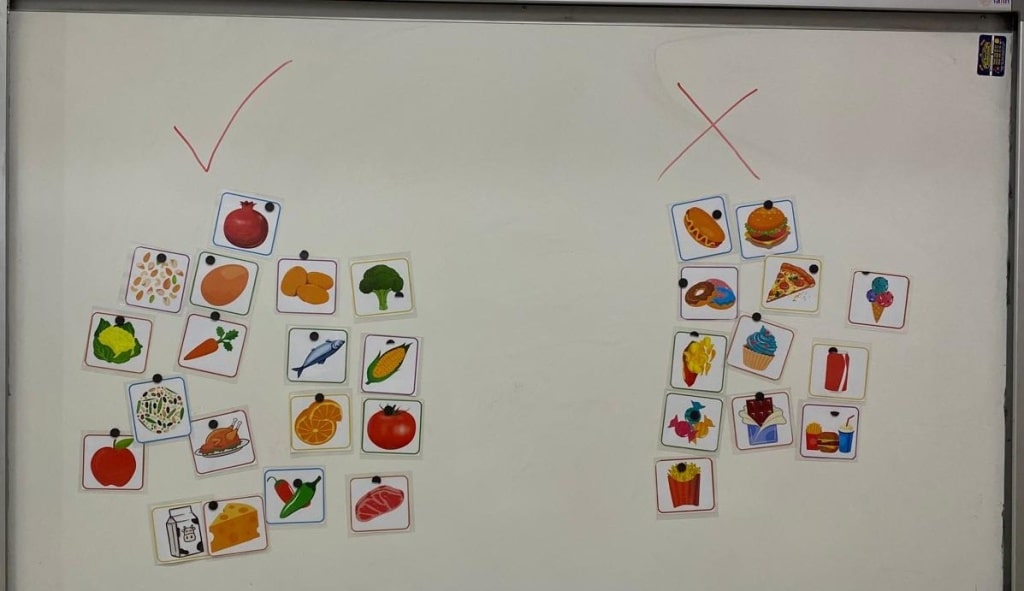 Okulumuz rehber öğretmeni tarafından öğrencilere sağlıklı beslenme konulu etkinlikler yapıldı. Gelişim döneminde olan çocuklara yediğimiz yiyeceklerin büyüme ve gelişmede çok önemli olduğu anlatılarak sınıf içi etkinliklerle konunun önemi desteklendi.